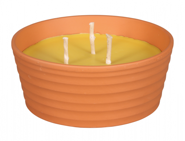 Tato elegantní svíčka se třemi knotky je umístěna v odolné keramické terakotové žardince značky SIRIUS NATUR. S hmotností 850 gramů a průměrem 18 cm poskytuje dlouhou dobu hoření a rovnoměrné uvolňování citronelového oleje, který je známý svými odpuzujícími účinky vůči komárům a dalším nežádoucím hmyzím návštěvníkům. Výška 7 cm je ideální pro bezpečné použití ve venkovních prostorách.