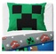 Toto povlečení je vyrobeno z 100% hladké bavlny, která zajišťuje příjemný a prodyšný povrch pro nerušený spánek. Je oboustranné, což umožňuje měnit design podle nálady - na lícní straně jsou zelení kostičkovaní Creepeři, známí z Minecraftu jako tiché příšery, které explodují, pokud se přiblíží příliš blízko. Povlak na polštář z jedné strany zobrazuje hlavu Creepera a z druhé je laděný do stejného motivu jako rubová strana přikrývky.