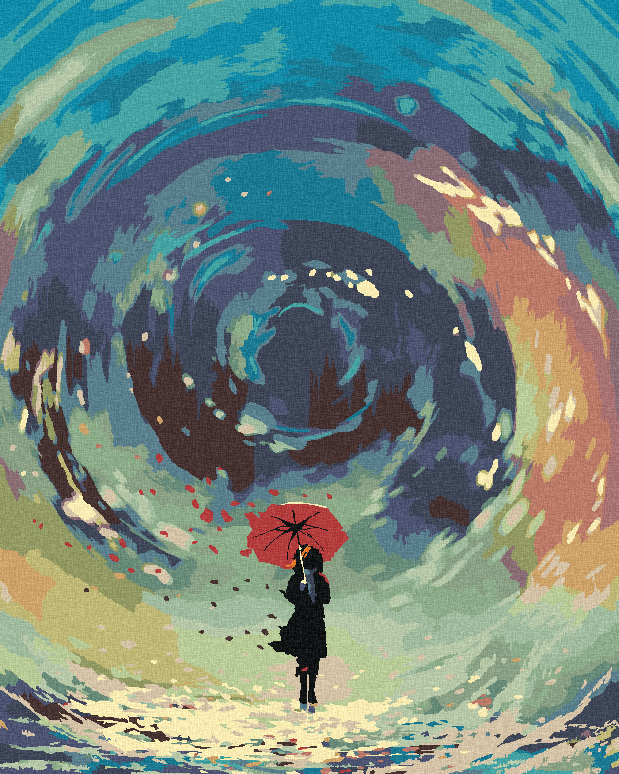 Malování podle čísel - ŽENA S DEŠTNÍKEM A VODNÍ VÍR - 40x50 cm, bez rámu a bez vypnutí plátna