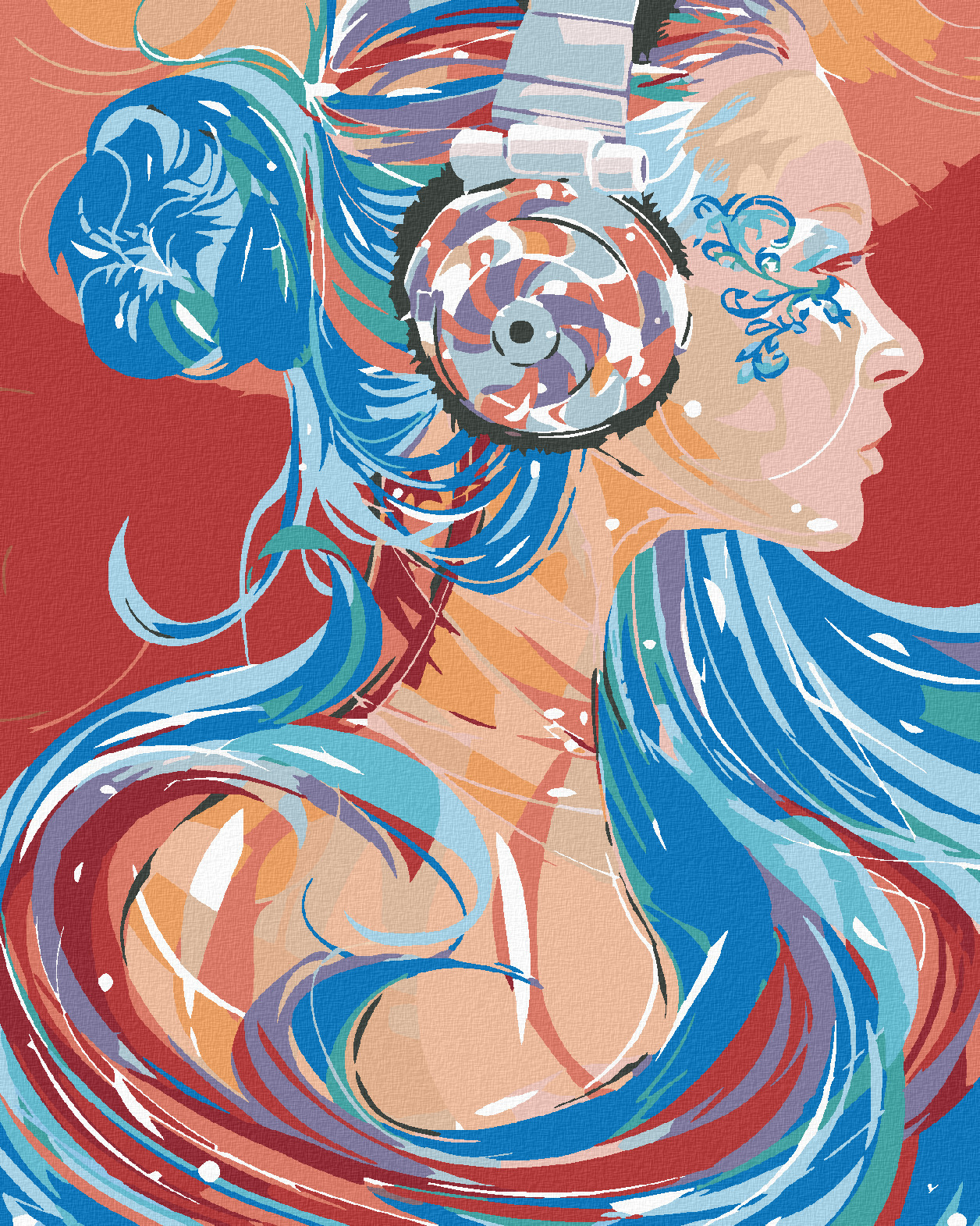 Malování podle čísel - ŽENA SE SLUCHÁTKY V OPOJENÍ HUDBOU - 80x100 cm, vypnuté plátno na rám