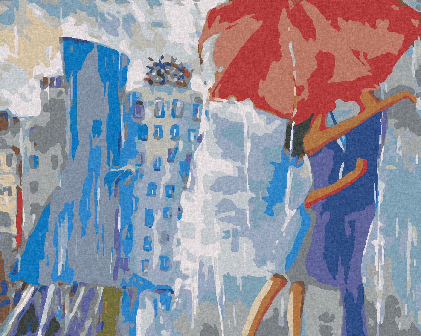 Malování podle čísel - MĚSTO V DEŠTI - 80x100 cm, bez rámu a bez vypnutí plátna