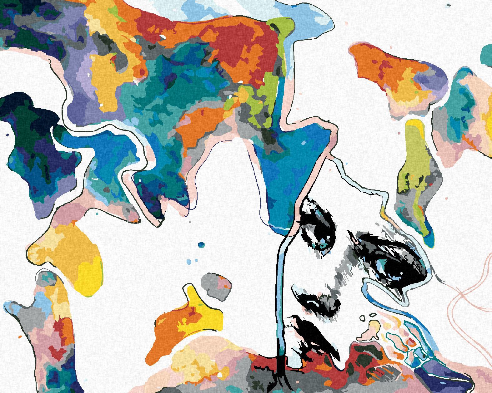 Malování podle čísel - ŽENA A BAREVNÉ SKVRNY - 80x100 cm, vypnuté plátno na rám