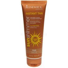 Bronzer na obličej a tělo **Rimmel London Sun Shimmer Instant Tan**.