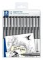 Liner "Pigment liner 308", černá, sada, 12 šířek stopy, STAEDTLER 308-9 TB12