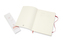 Zápisník s měkkou, ve hřbetu šitou vazbou v kartonových deskách, obepnutý pružnou páskou proti samovolnému otevírání. Zápisník je vybaven pořadačem poznámek, který je vyroben z tkaniny a kartonu, textilní záložkou a letákem s historií MOLESKINE. Gramáž papíru 70 g/m2, neobsahuje kyseliny. Rozměr: 19 x 25 cm, 96 listů, linkovaný