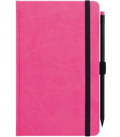 Originální linkovaný notes A5 s animací v rohu, papírová kapsa na drobné dokumenty, gumička na zavření a poutko na tužku i s tužkou