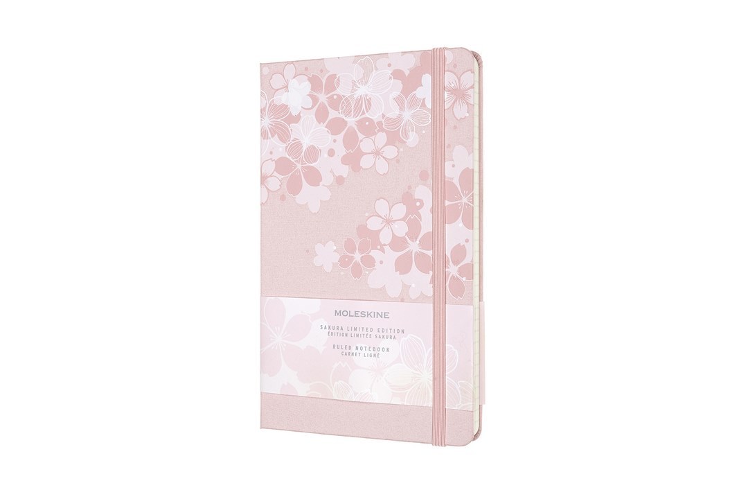 Zápisník z limitované edice Sakura. Předsádka zápisníku je tematicky vyzdobena. Zápisník má pevnou, ve hřbetu šitou vazbu. Obepíná ho pružná páska proti samovolnému otevírání. Je vybaven praktickou vnitřní kapsou, která je vyrobena z tkaniny a kartonu, a textilní záložkou s letákem s historií Moleskine. Papír s gramáží 70 g/m2 neobsahuje kyseliny. Součástí zápisníku je páska s ilustracemi.