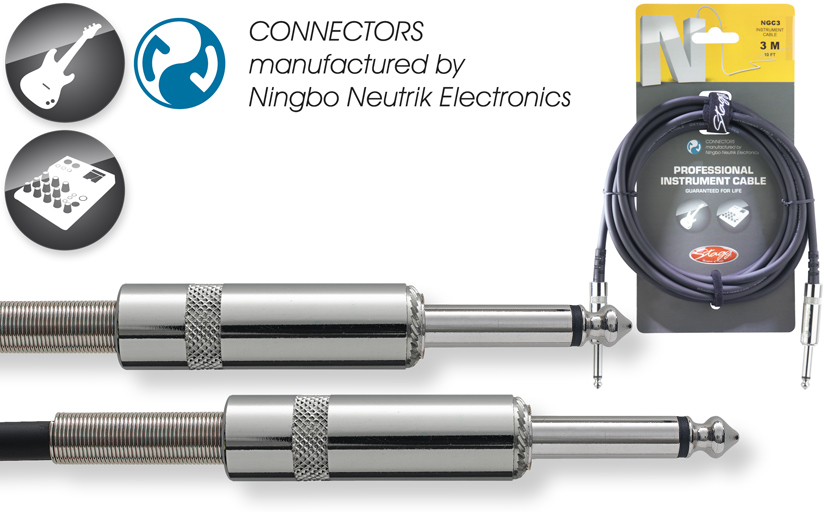 Profesionální nástrojový kabel Jack 6,3 - Jack 6,3 mm. Délka 6 m, průměr 6 mm, provedení černé, kabely jsou osazeny konektory Ningbo-Neutrik. Produkt je ve shodě s RoHS.