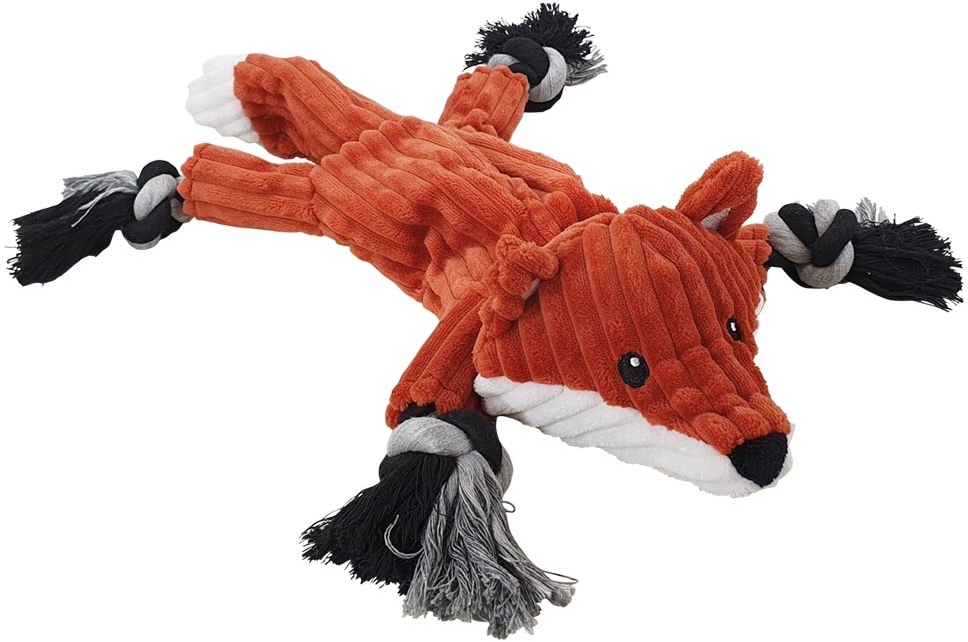 Hračka pro psy ke kousání a zábavu. Liška v oranžové barvě a celkovým rozměrem 38 cm. Hračka je ideální pro psy, kteří chtějí hrát a mazlit se. Je ideální k mazlení a lano je určené k tahání a hraní. Tato hračka pro psy je vyrobena z plyše a je vybavena lanem pro větší pevnost. Ocas při hraní si s hračkou vydává praskavé zvuky Celková velikost: 38 cm Materiál: kvalitní plyš, lano Upozornění: Stejně jako u jiných hraček pro psy by si i s touto hračkou mělo zvíře hrát pod dohledem páníčka nebo jiné zodpovědné osoby. Prosíme dbejte na to, aby hračka, s kterou si Váš pes hraje, byla nepoškozená. Stav hračky pravidelně kontrolujte. V případě, že je hračka poškozena nebo jí již chybí některé součásti, tuto hračku prosím nahraďte. Zamezíte tak případnému zranění Vašeho psa
