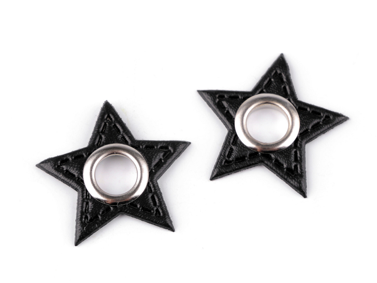Průchodka s koženkovou hvězdou k našití, průvlek 8 mm - 20 ks - 3 černá nikl