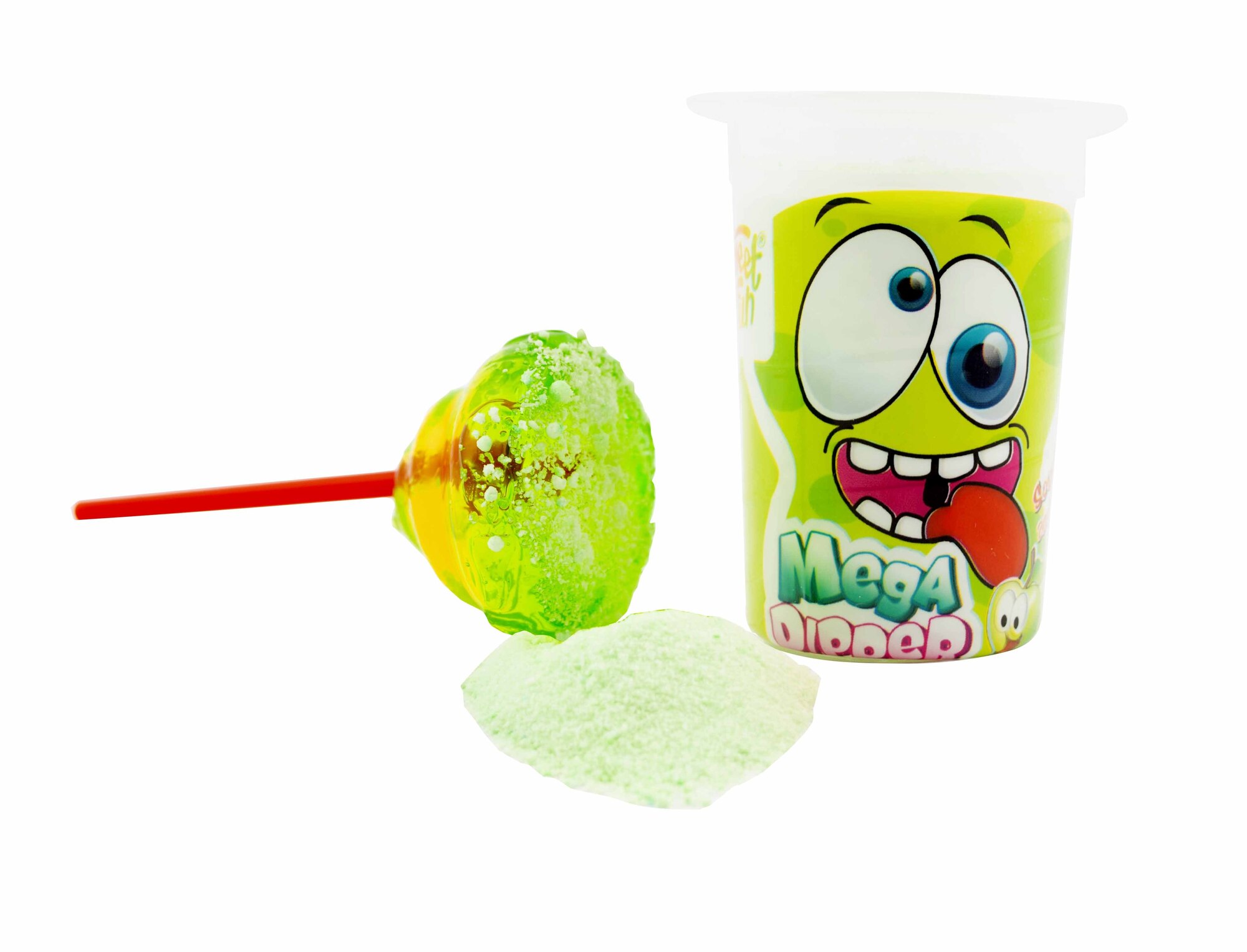 Složení: Lízátko: cukr, glukózový sirup, regulátory kyselosti: E270, E325; aromata, barviva: E100, E133, E163. Cukrovinkový prášek: dextróza, maltodextrin, glukózový sirup, aromata, regulátor kyselosti: E330; barviva: E100, E133, E163. Balení obsahuje 9 ks.