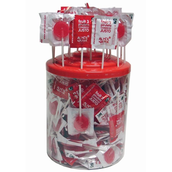 Plochá červená lízátka na tyčce s oblíbenou třešňovou příchutí vyrobená z přírodních ingrediencí a třtinového cukru od družstva Felsina v Paraguayi. Na 200 lízátek v praktické uzavíratelné dóze s děrovaným víkem pro dokonalou prezentaci i zásobu zároveň.