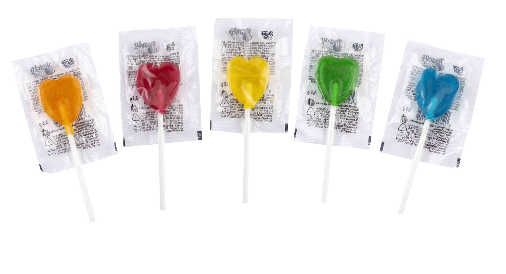Složení: glukózový sirup, cukr, regulátor kyselosti: E330; aromata, stabilizátor: E471; barviva: E100, E133, E160a, E163. Balení obsahuje 200 ks. číst celé