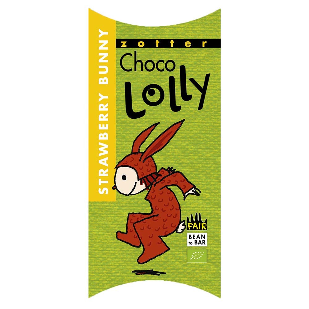 Zotter Bio čokoládové lízátko Jahodový zajíček, 20 g
