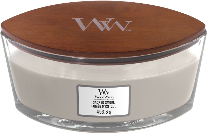 WoodWick Ellipse Sacred Smoke (Mystický kouř) - mystická kouřová vůně pryskyřice ze dřeva Palo Santo s kořeněnými tóny hřebíčku.