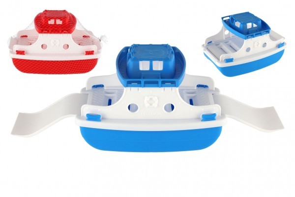 Loď/Trajekt do vody plast 2 barvy v síťce 17x26x16cm