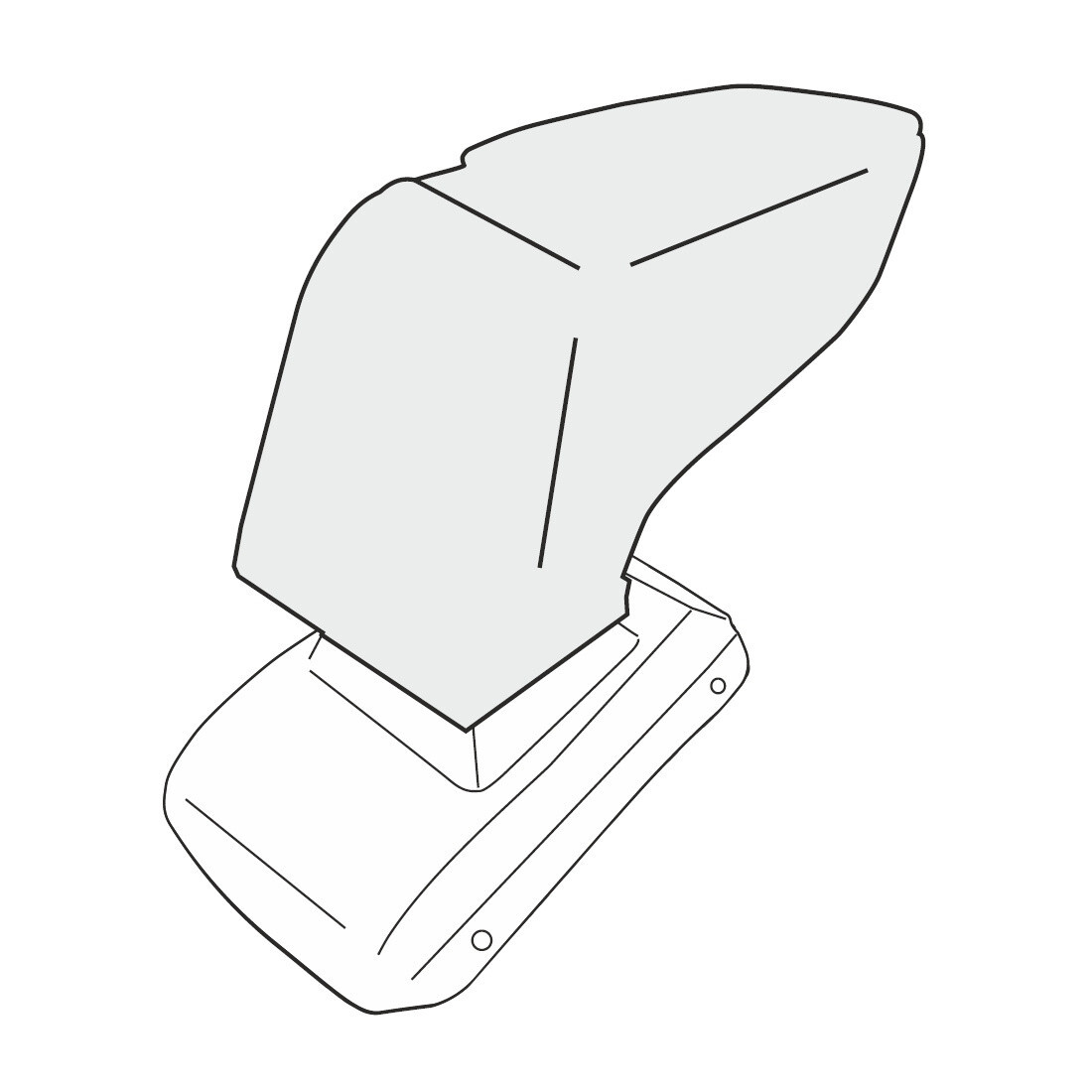 Vrchní část loketní opěrky je dle Vašeho výběru potažena jemnou koženkou nebo textílií černé barvy. Samozřejmostí je možnost odklopení vrchní části loketní opěrky, kde je úložný prostor, který je opatřen gumovou protiskluzovou podložkou. Uvnitř opěrky jsou na spodní části víka umístěny dva držáky na tužku