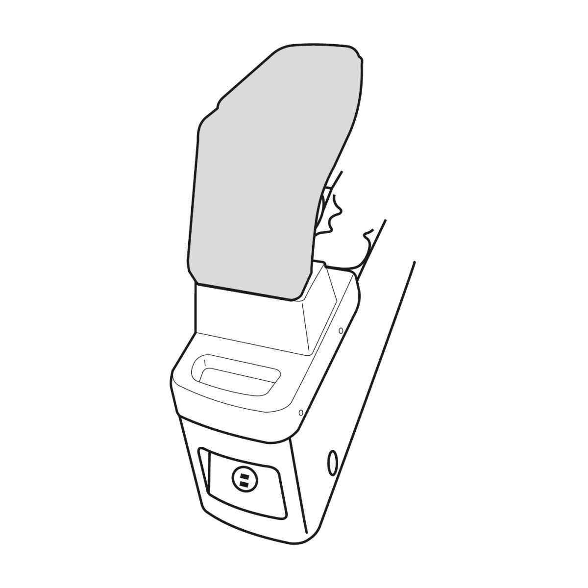 V přední části loketní opěrky je malý výřez na kabel. Během nabíjení tak můžete telefon uložit do loketní opěrky. Jedná se o nejdelší loketní opěrku. Od základny adaptéru je délka loketní opěrky 23,5cm.