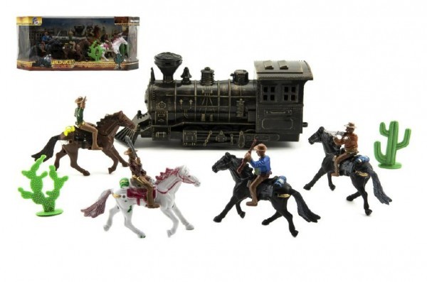 Sada kovbojové s lokomotivou plast 7ks v krabici 34x15x16cm