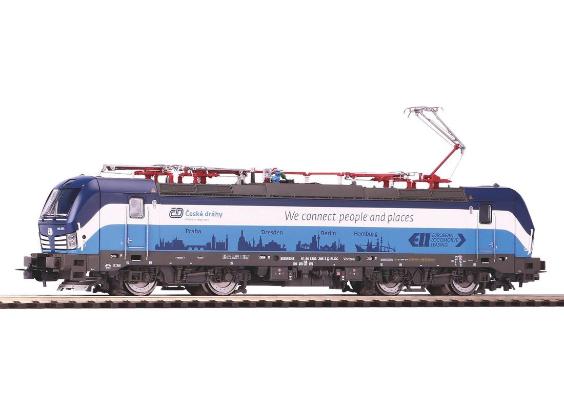 Piko Elektrická lokomotiva Vectron ČD VI - 59188 S tímto modelem elektrické lokomotivy Vectron H0 splnila firma PIKO přání svých fanoušků, kteří si přáli modely nejnovějších železničních technologií. Vectron je velmi přesným modelem, který má řadu doplňků, je vyroben precizně s rámem z litého zinku, motor se dvěma setrvačníky pak zajišťuje vynikající jizdní vlasnosti. Železniční trakce na čtyři nápravy, zvýšena dvěma trakčními pneumatikami, které jsou uspořádané diagonálně na obou podvozcích. Světlomety a zadní světla LED červená/bílá se mění dle směru jízdy. Elegantní exteriér zahrnuje i precizně vymodelovanou střechu a detailní podvozky s prototypovými profily disků kol. Lokomotiva ČD jezdí na trase Praha-Drážďany-Berlín-Hamburg. Éra VI. Obsahuje přípojku pro DSS PluX22 Německá firma PIKO se zabývá výrobou modelů lokomotiv, vagónu, start setů, kolejiva a kolejových setů. Klasickým výrobkem, kterým se firma PIKO celosvětově proslavila, je modelová železnice. Modely železnice jsou vysoce detailní. Firma PIKO vyrábí modely ve velikostech H0 (měřítko 1:87), G (měřítko 1:25), TT (měřítko 1:120) a N (měřítko 1:160). PIKO modelové železniční výrobky pokrývají nejrůznější potřeby modelářů. Jsou pravidelně testovány a oceňovány v domácím i zahraničním tisku.