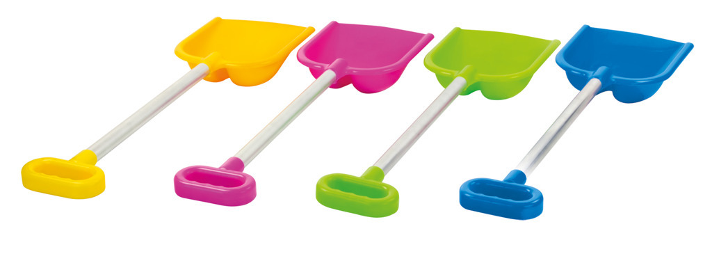Velká lopatka na písek z kvalitního plastu ve čtyřech barevných provedeních žlutá, růžová, modrí a zelená.