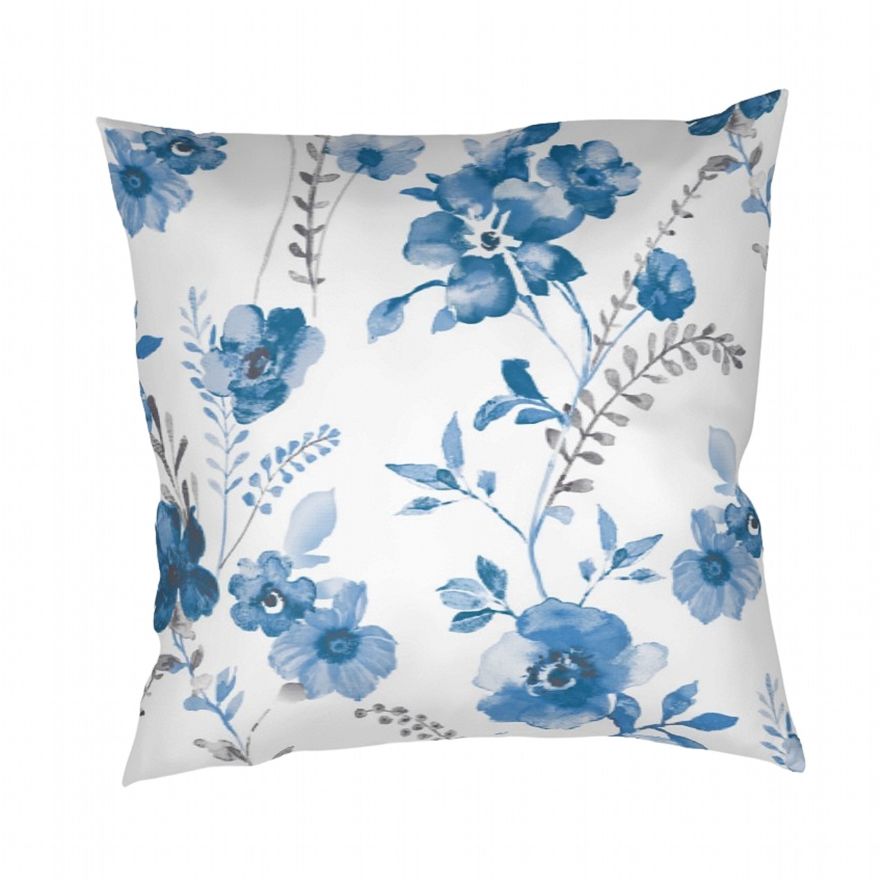 Dadka Povlak na polštář flanel Kvítí modré na bílém 40x40 cm