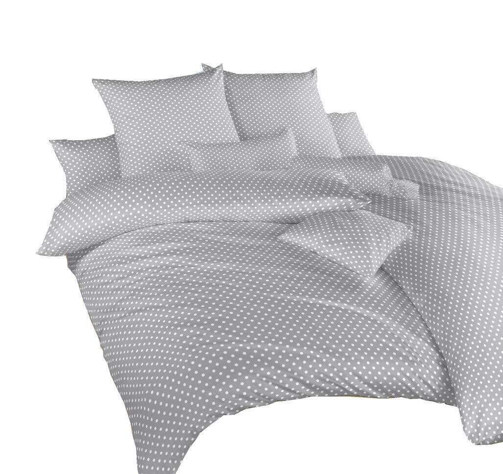Dadka Povlečení bavlna Puntík bílý na šedém 140x200, 70x90 cm