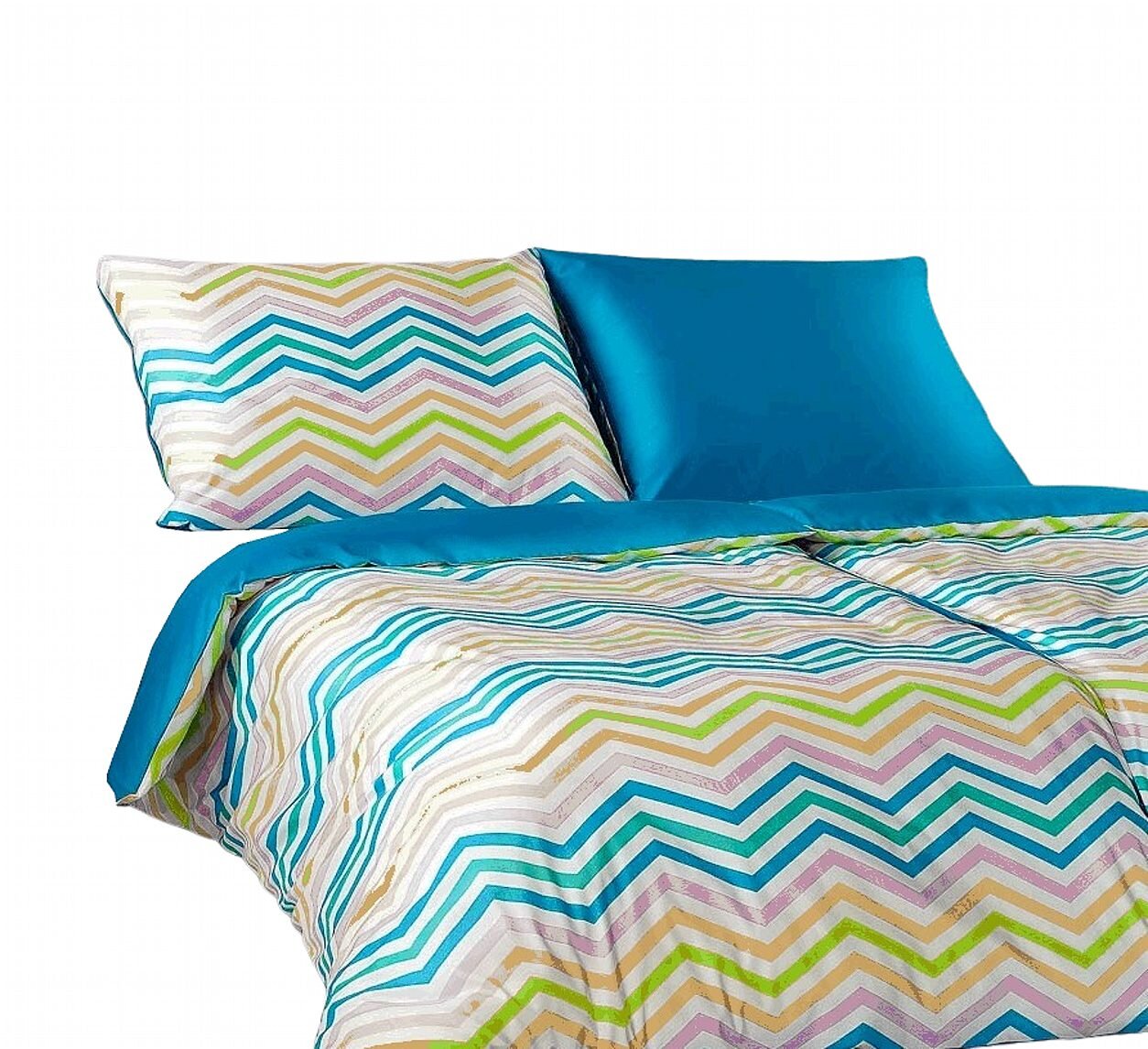 Veba Povlečení satén Klikaté pruhy multicolor I.modrá 140x200, 70x90 cm