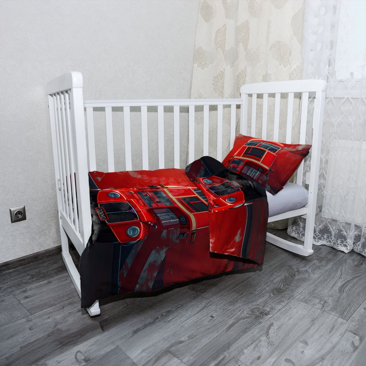 Dětské povlečení do postýlky Červený patrový autobus Vlajka: 120x90 / 40x60