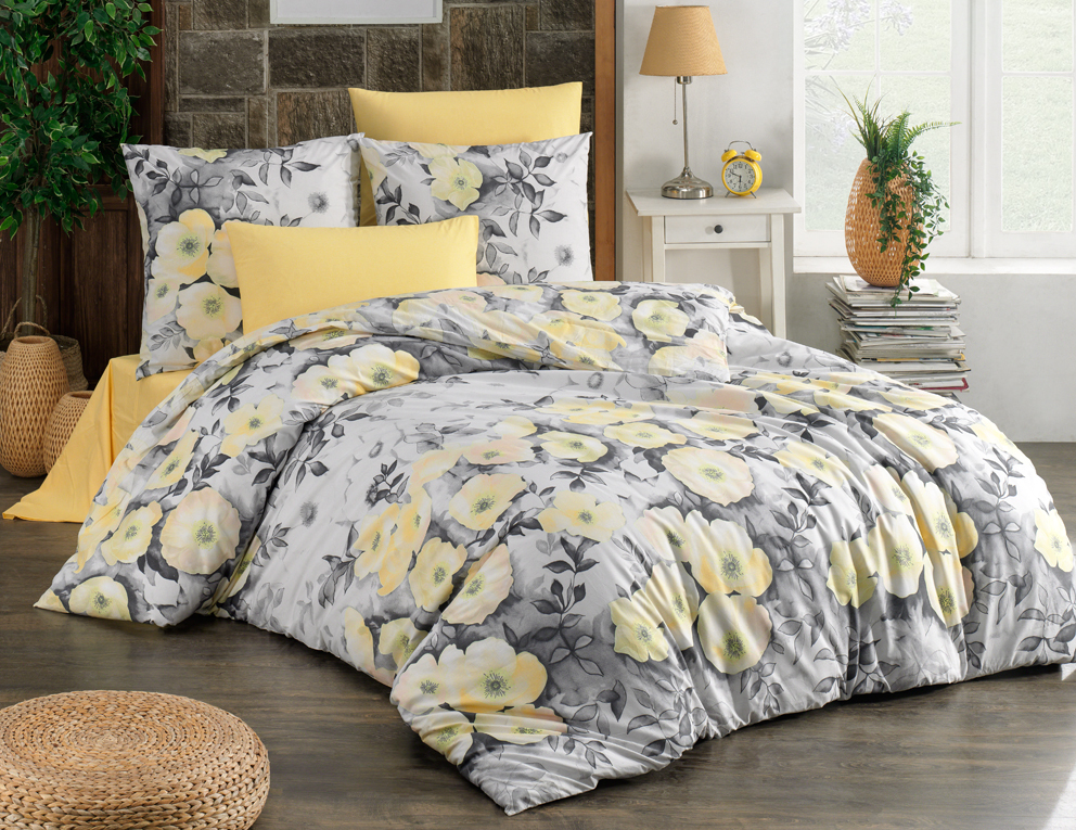 Krásná kombinace divokých květů žluté barvy, které zahltily lícní i reverzní stranu povlaku přikrývky a polštáře jsou doplněny šedivými listy a stonky, které se mezi květy proplétají na povlečení Alisa Žluté Ložní sada je vyrobena ze 100% hladké bavlnyrenforce a pochází z nové kolekce BedTex Exclusive jaro 2021Květinové žluto šedé povlečení nabízíme ve dvou rozměrech a to v klasickém 140x200/ 70x90 cm, a francouzském 220x200/ 2x 70x90 cmPovlečení má zipový uzávěrDoporučená barva prostěradel je žlutá, bílá a šedáSada povlečení obsahuje 1 povlak na polštář a 1 povlak na přikrývku, francouzské povlečení pak 2 povlaky na polštáře a 1 povlak na přikrývkuPovlečení má certifikát Öko-Tex Standard 100