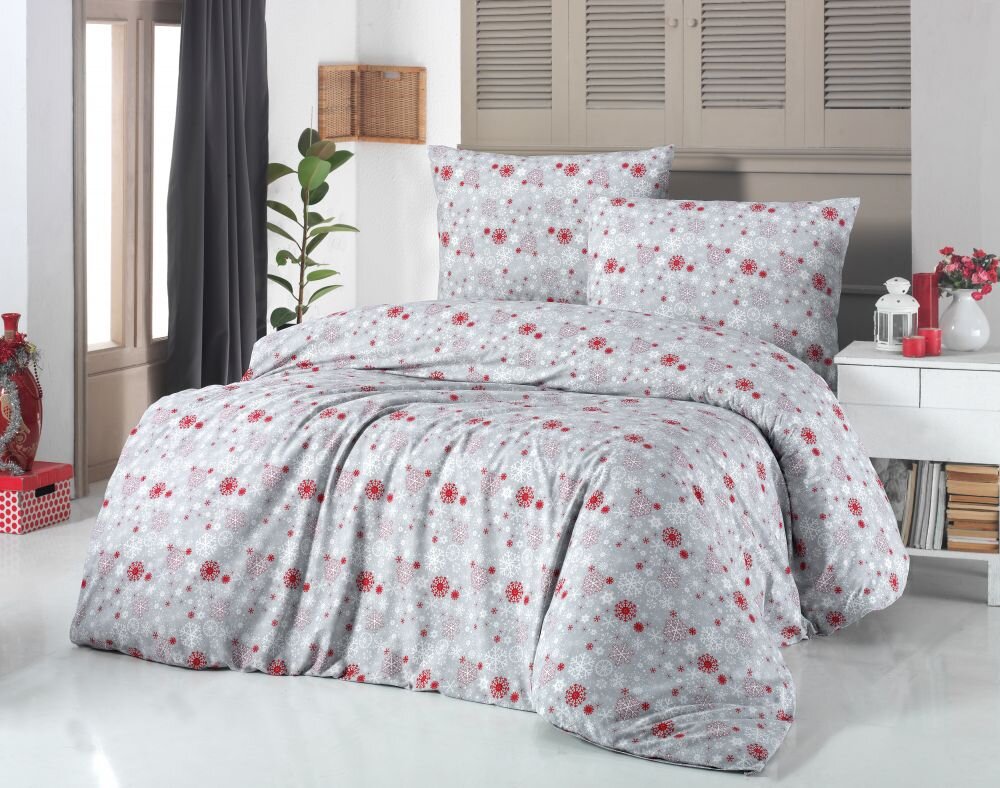 Vánoční povlečení 200x200, 70x90cm VLOČKY červenošedé