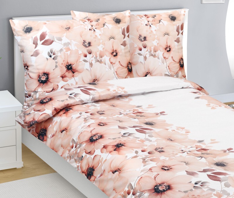Povlečení bavlněný satén - Lososová,Bílá - 140x200, 70x90 cm