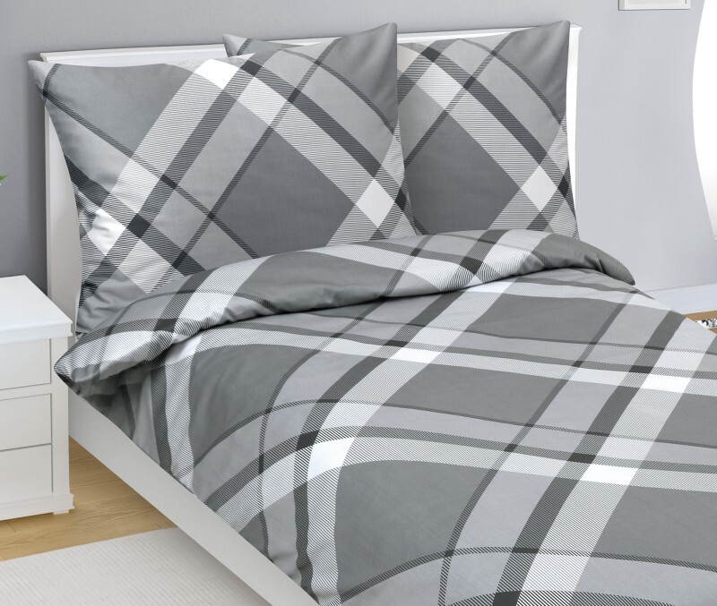 Povlečení bavlněný satén - Šedá,Bílá - 140x200, 70x90 cm
