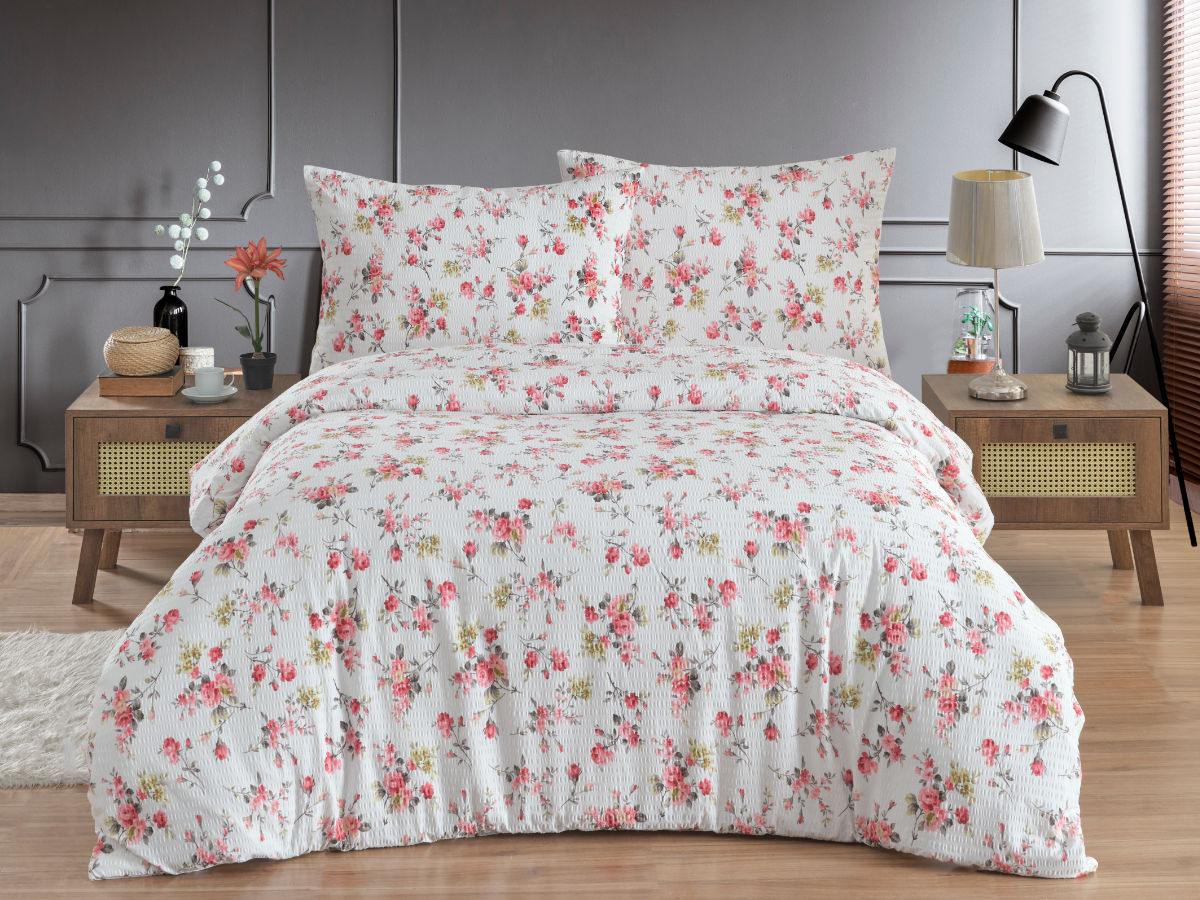 Povlečení je vyrobeno z velmi jemné 100% bavlněné tkaniny o plošné hmotnosti tkaniny 130g/m2. Krepování je vytvořeno pomocí speciální úpravy. Díky tomuto krepování se povlečení nemusí žehlit. Tkanina má vysokou hustotu velmi jemných přízí a pro tyto své vlastnosti je velice jemná a příjemná na omak. Ložní povlečení je vyrobeno s rozměrovou rezervou pro vysrážení po vyprání. Povlečení je vyrobeno v ČR s oblíbeným zipovým uzávěrem.
