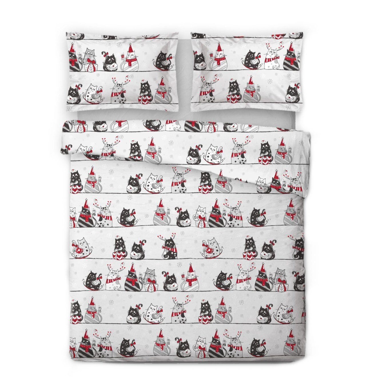 Povlečení Mikroflanel Kočky na střeše je ideálním dárkem pro milovníky koček a zimní pohody. Vnese do ložnice radost, teplo a sváteční náladu.