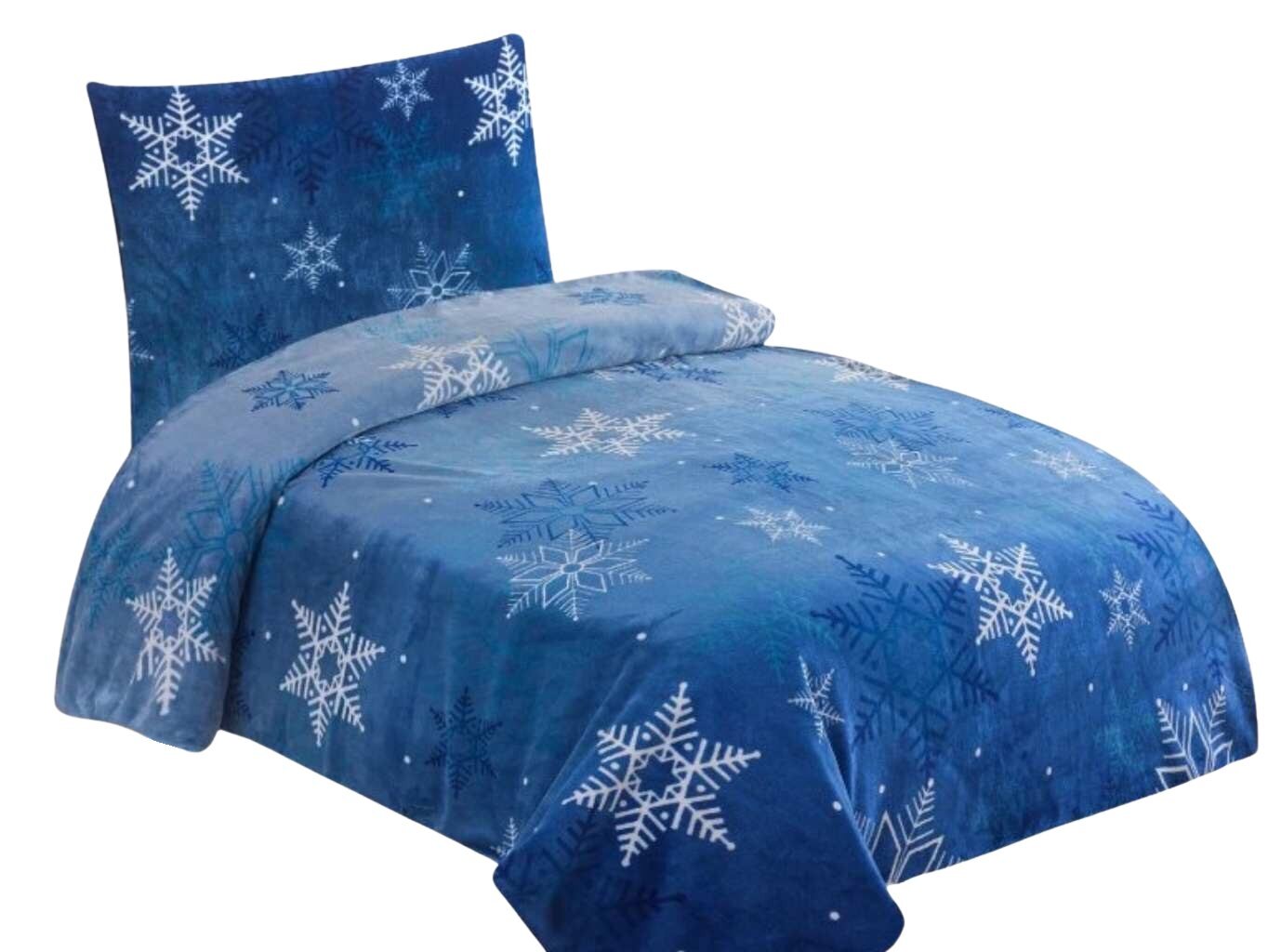 Ideální dárek pro zimní období - povlečení Mikroflanel Vločka modrá zahřeje, potěší a dodá ložnici kouzelnou zimní náladu!