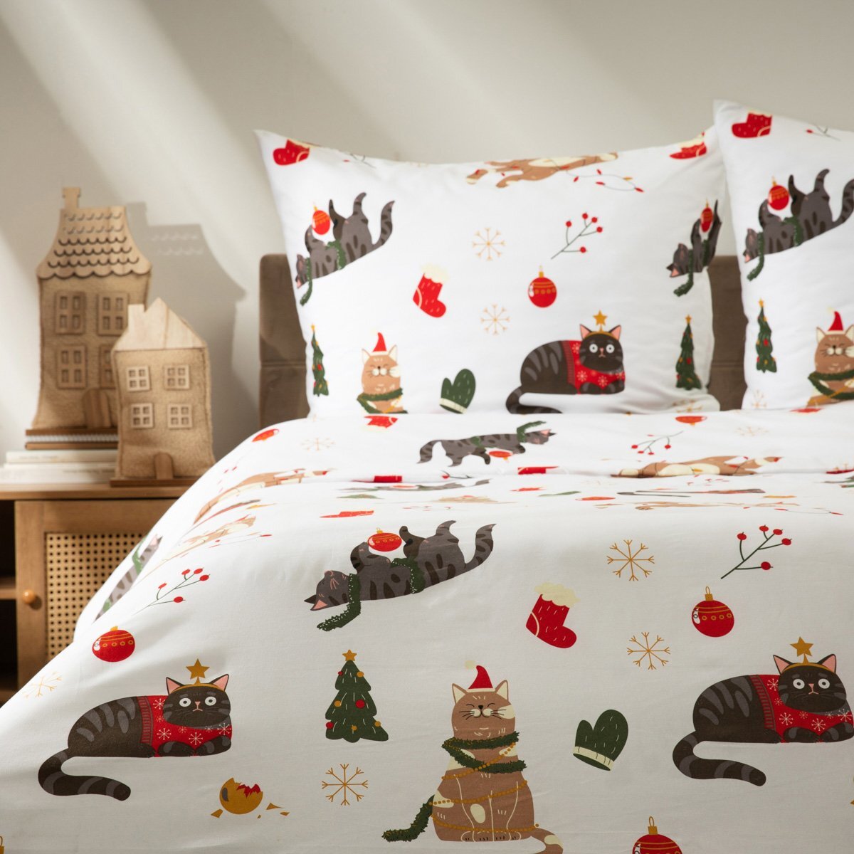 Vánoční mikrovláknové povlečení | CATNESS | vánoční kočky | 140x200 + 1*70x80 cm | 700354