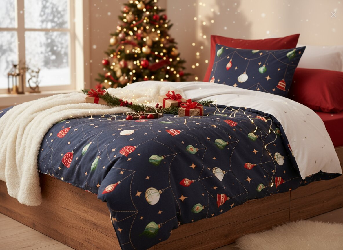 Vzor Bombshell - Odolná mikrovlákna - Součástí balení je povlečení na peřinu a 2 povlečení na polštáře - Odolné proti zmačkání - Mikrovláknové ložní prádlo s motivem vánočních ozdob 140 x 200 cm