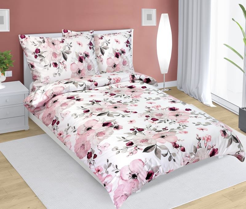 Povlečení bavlněné - růžové květy - 140x200, 70x90