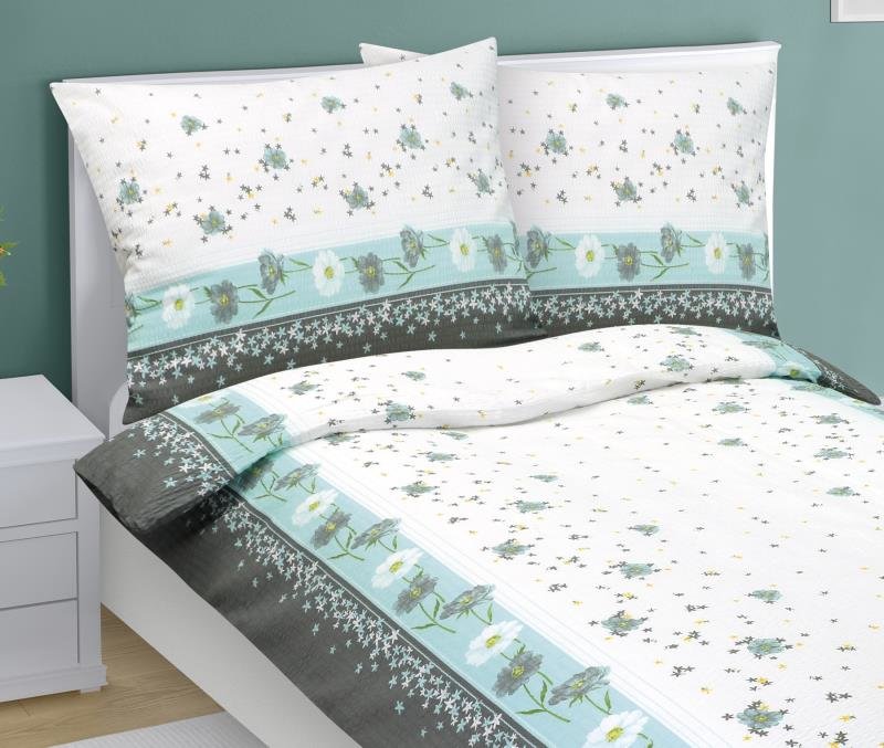 Povlečení krepové - tyrkysový květ s pruhem - 140x200, 70x90 cm