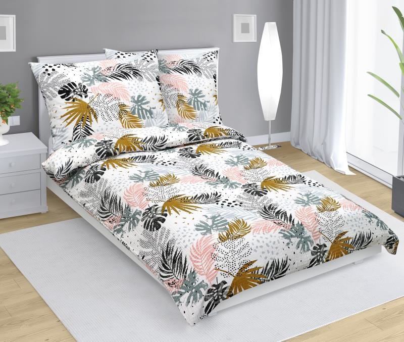 Povlečení krepové - barevná peříčka - šedá, růžová, hnědá - 140x200, 70x90 cm