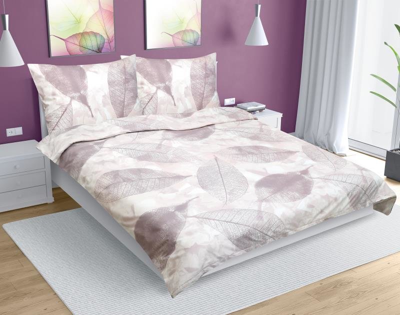Povlečení bavlna na dvoudeku - béžový list - 1x 200x200, 2ks 70x90 cm