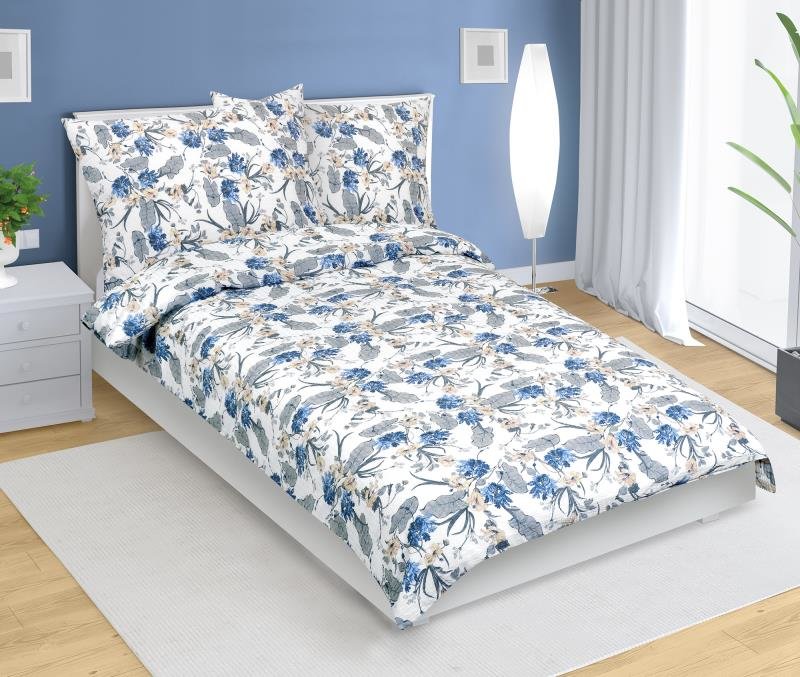 Povlečení krepové - modrý květ - 140x200, 70x90 cm