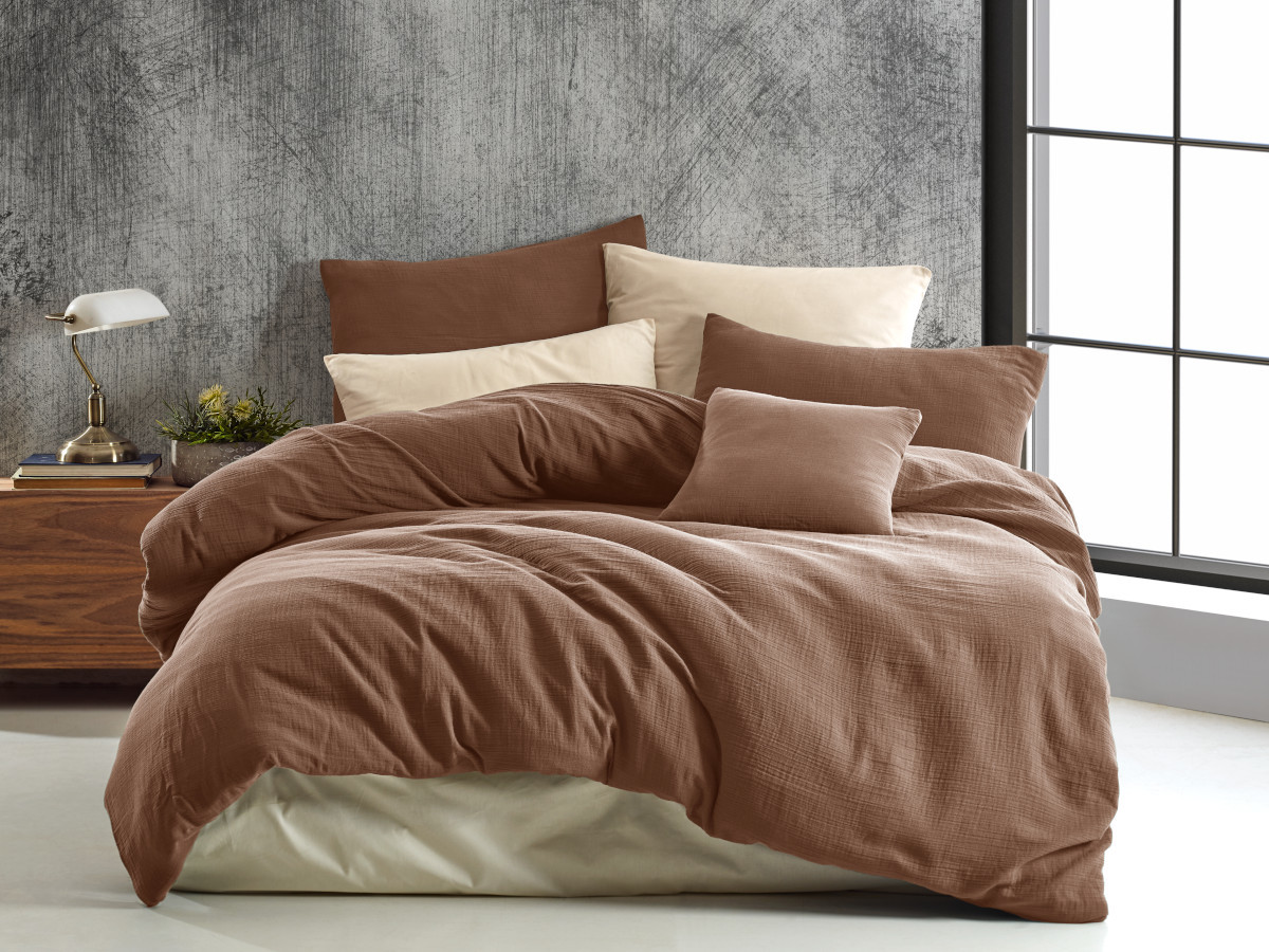 Mušelinové povlečení 140x220, 70x90 cm hnědé