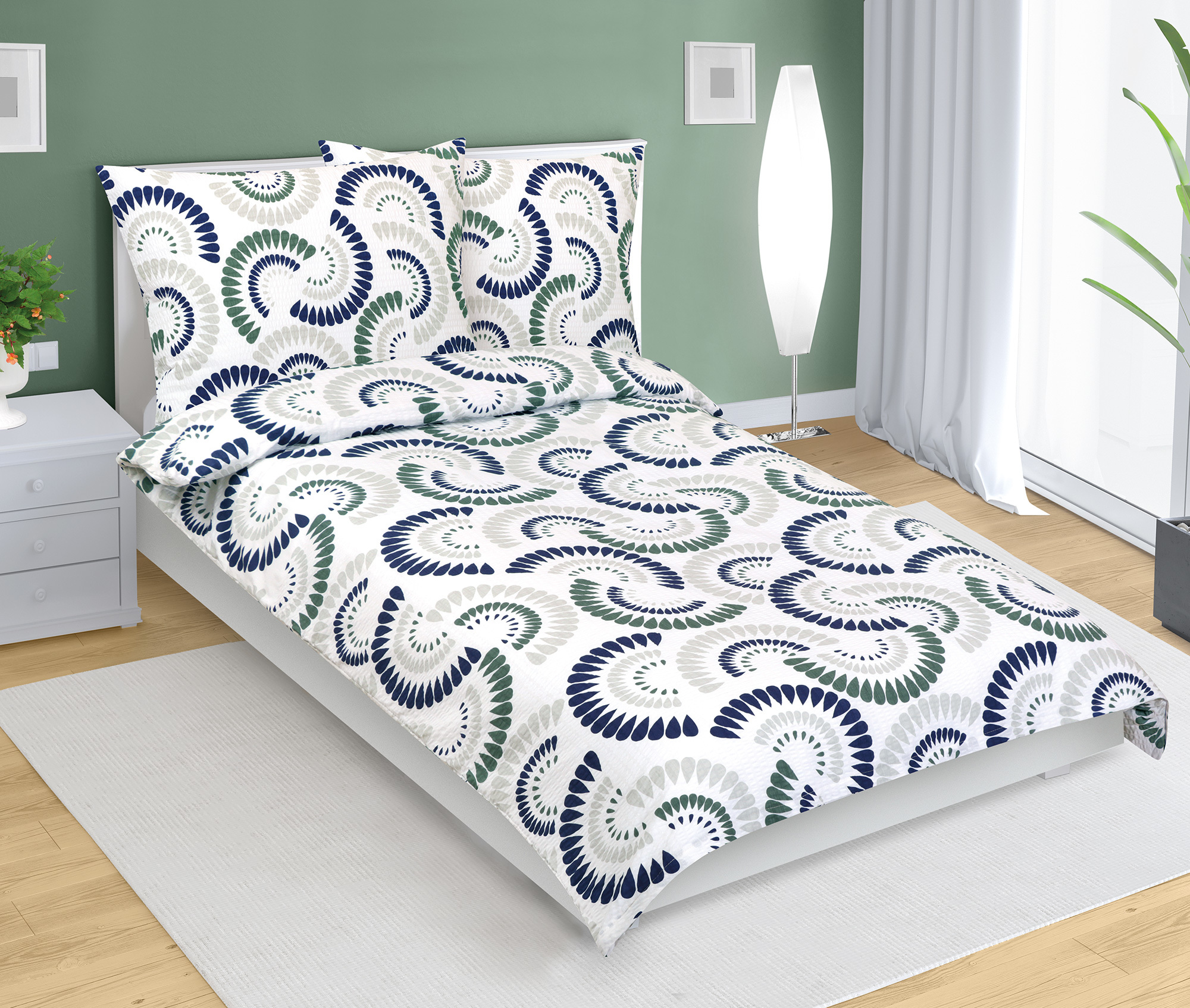 Povlečení krepové - Kapka modrá, zelená - 140x220, 70x90 cm