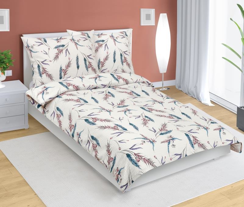 Povlečení krepové - Klas béžová, modrá - 140x200, 70x90 cm