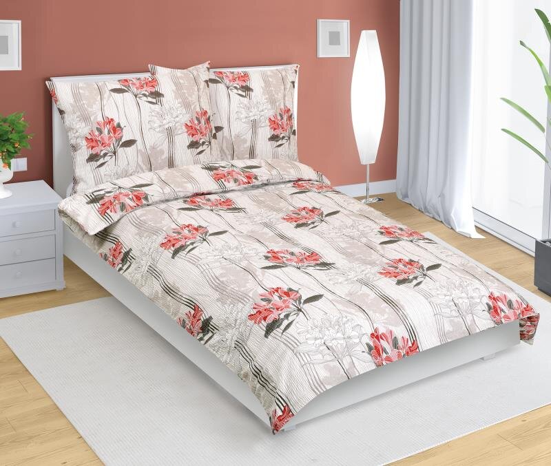 Povlečení krepové - Kvítek červená, béžová - 140x220, 70x90 cm