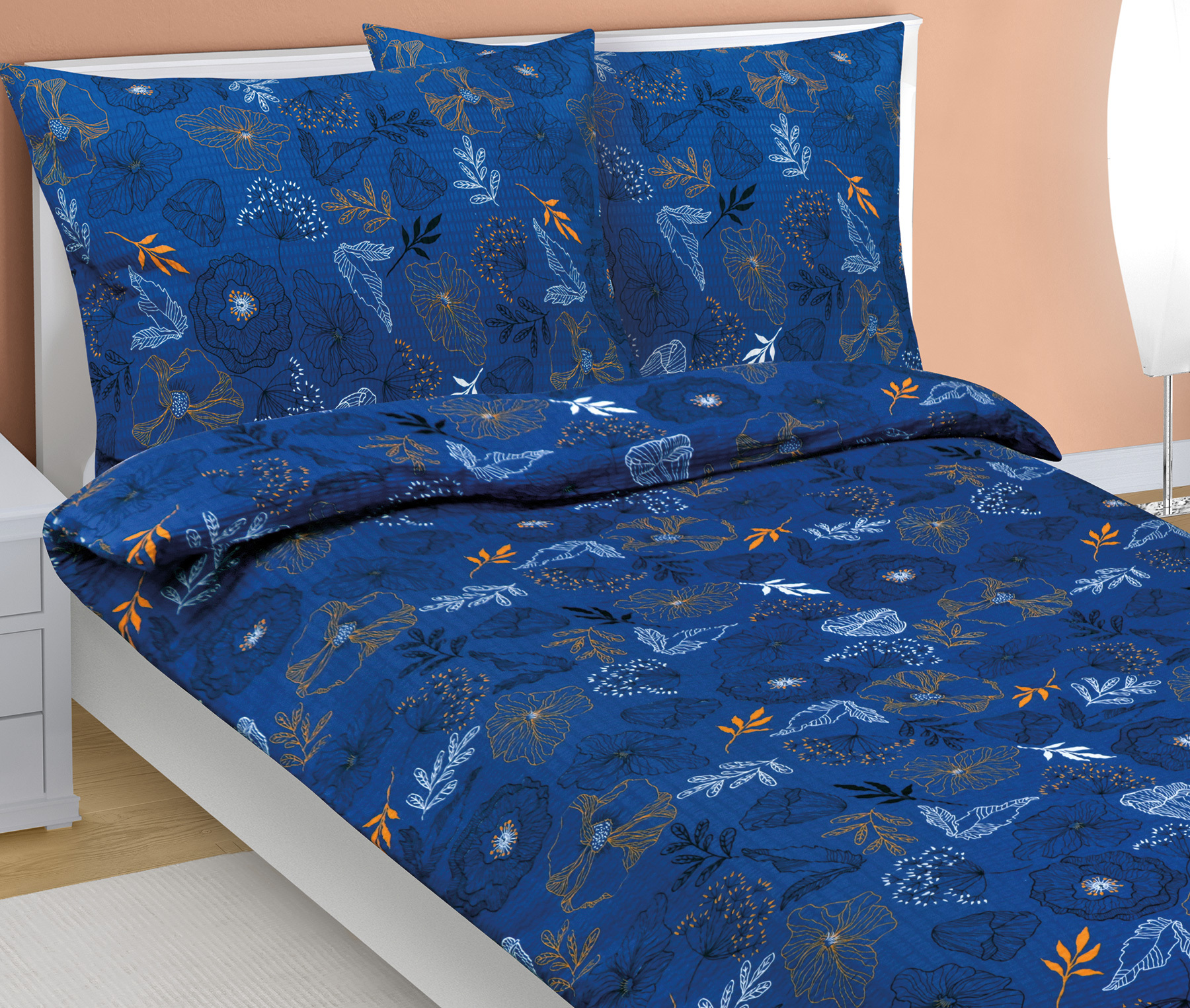 Povlečení krepové - Louka modrá tmavá - 140x200, 70x90 cm