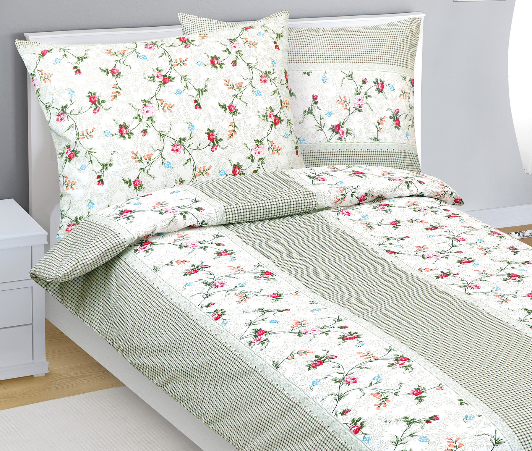 Povlečení bavlněné - Růže, kostička zelená, růžová, hnědá - 140x200, 70x90 cm