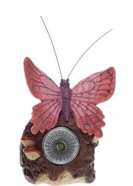 Solární světlo - růžový motýl na kameni. Napájení NI-MH 1.2V, 40MAH (baterii nelze vyměnit).